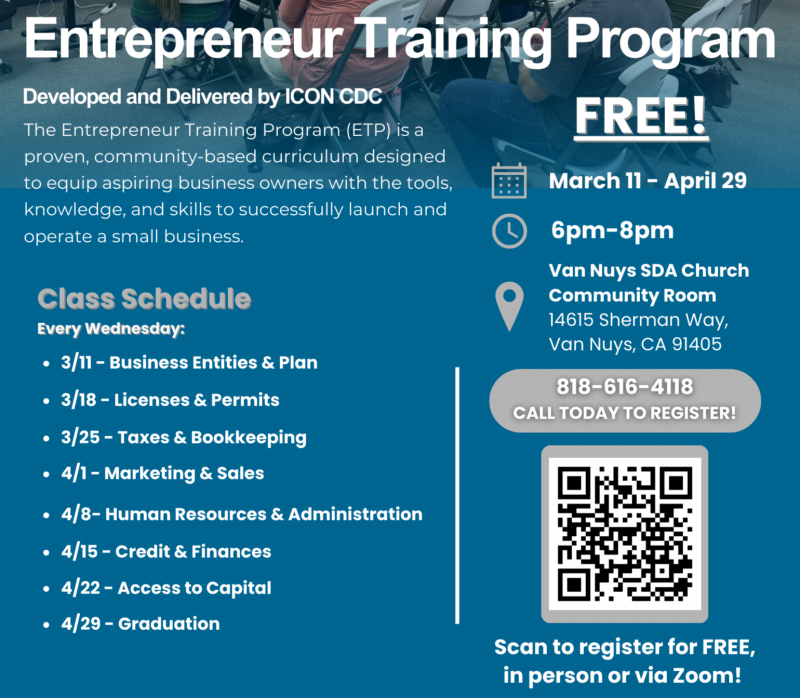 SD 20 entrepreneurs! Icon CDC is hosting a FREE training classes this month to help equip aspiring business owners with the tools, knowledge and skills to successfully launch and operate a small business. The next class is on April 22nd at 6 PM on Access to Capitol. Participants can attend in person and/or virtually.